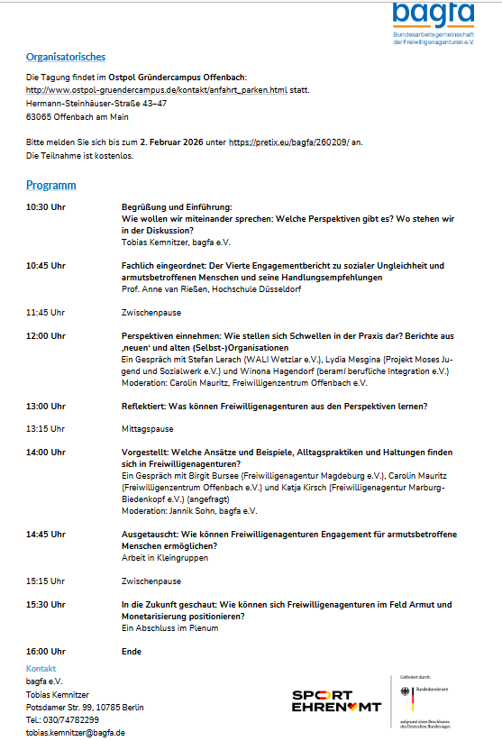 Der Thementag findet in Kooperation der bagfa e.V. mit dem Freiwilligenzentrum Offenbach e.V. statt.
