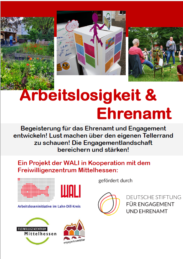 Wir haben ein neues großes Ziel: wir wollen erwerbslosen und armutserfahrenen Menschen die Chancen und Möglichkeiten ehrenamtlichen Engagements näherbringen und sie dafür zu begeistern, auf diesem Feld selbst tätig zu werden. Das Projekt wird von der „Deutschen Stiftung für Engagement und Ehrenamt“ gefördert.